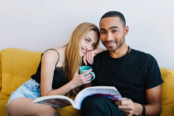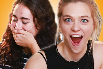 Two hot girls having sex on red couch