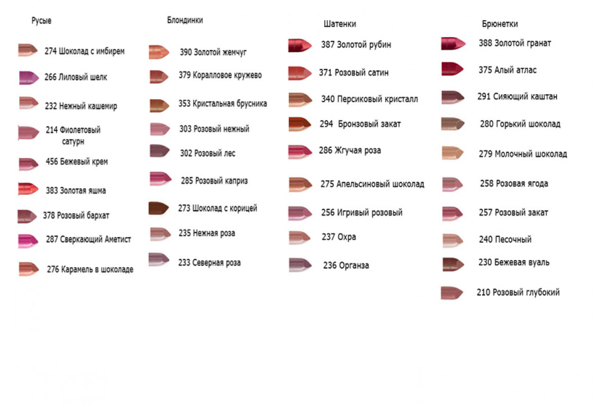 Цвета губ с названиями