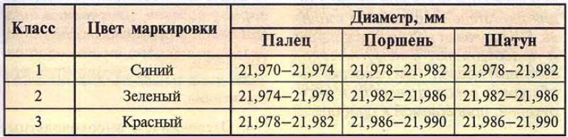 Цвета поршневых пальцев