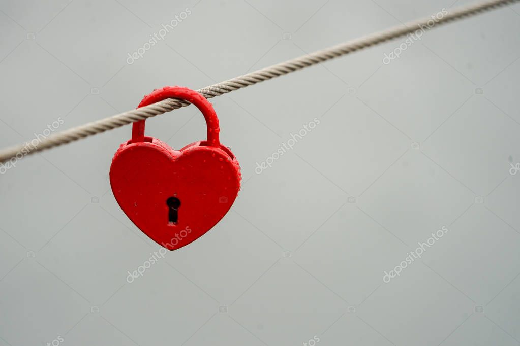 limbi007 Цветные висячие замки limbi007 Ino151 Красный свадебный замок с двумя золотыми сердцами на защитной веревке моста