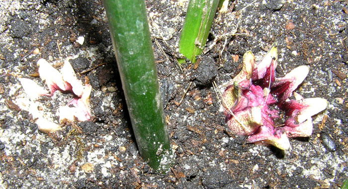 Аспидистра: фото и виды . . . Небольшой (30 мм) пурпурный цветок появляется у корневища раз в год ранним летом . Аспидистра крупноцветковая . . .