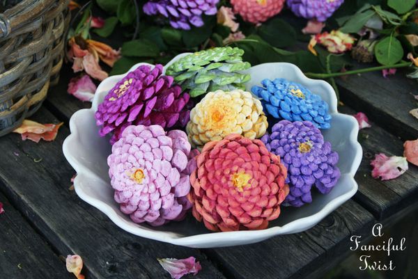 Осенние цветы из шишек . Для создания осеннего букета можно использовать сосновые и другие шишки . Каждый экземпляр окрашивают в яркие оттенки выбранного сезона . . . . Мастер-класс с фото и . . .