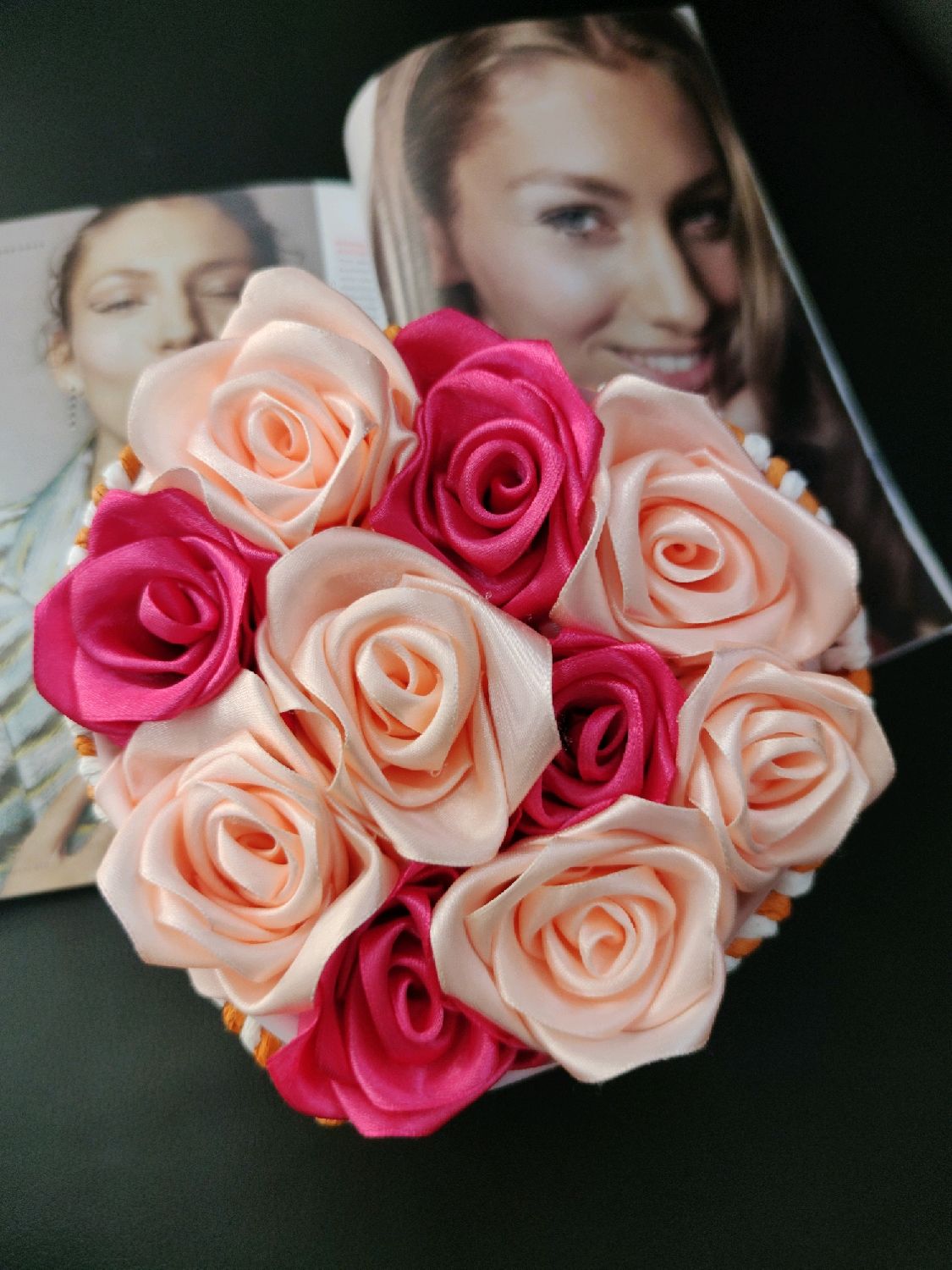 Цветы в корзине Картинки с надписями . Красивые фото цветы в корзине с пожеланиями для Любимой Девушки . Нежные розы с плетеной белой корзине с веточками цветущей яблони .
