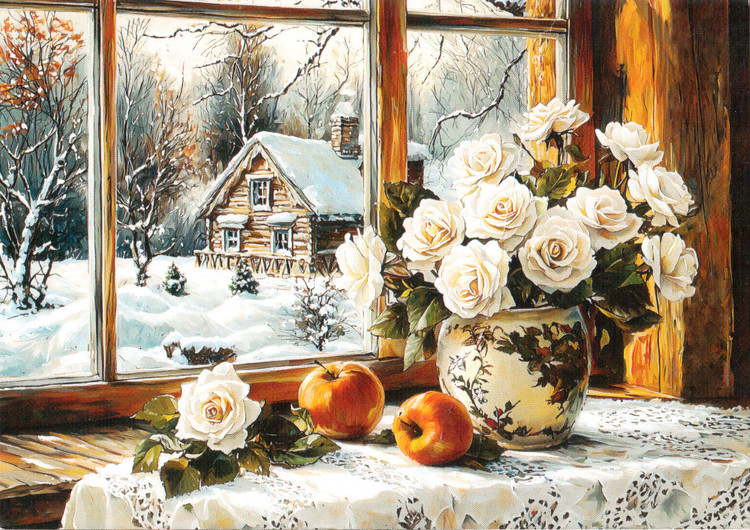 Цветы окно зима