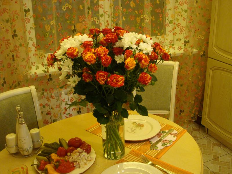 Цветы стояли на столе