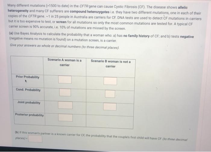 It has been argued that the imperfect sensitivity of the carrier test, for example in the case of cystic fibrosis (CF), might cause anxiety in couples if a mutation is detected in one of the partners, while the other tests negative, but may still carry a rare mutation (in future referred to as +/- couples) .1 Such couples have a residual risk and may be distressed by the lack of clear options, such as prenatal diagnosis .