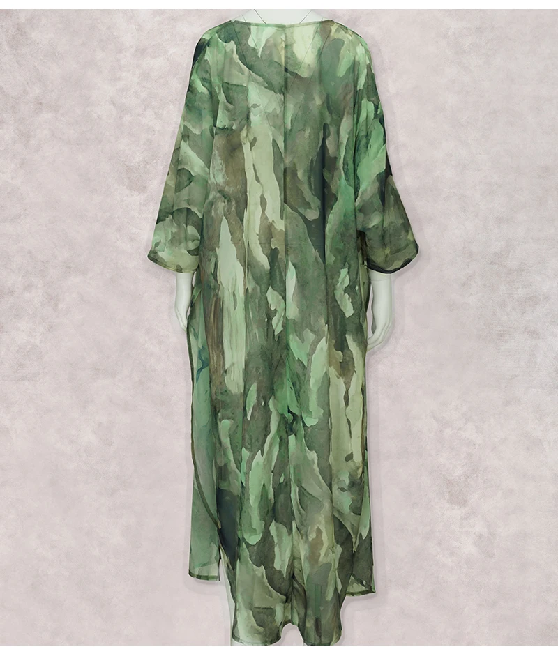 AYUALIN Kaftan women dress floral print Kimono long Sleeve Autumn dress Sexy V-neck Loose Belt Cardigan Rayon Dresses boho robe
