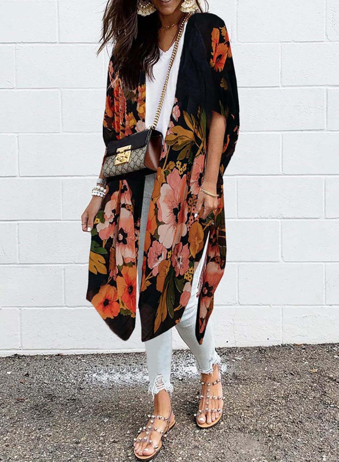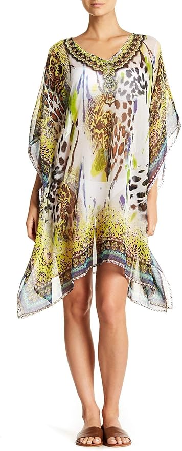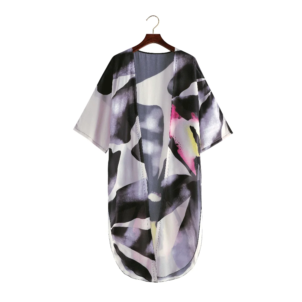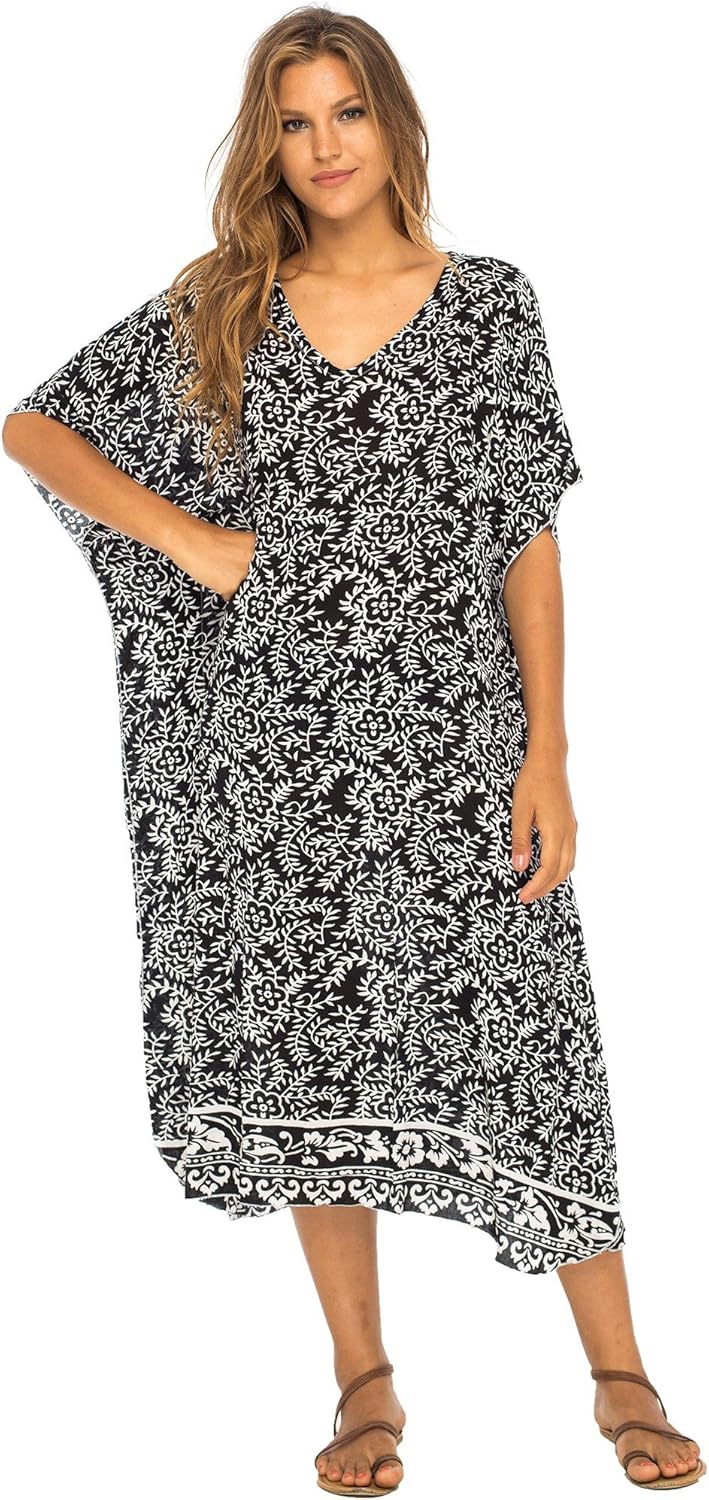 D0UD Women Button Up Kaftan Cardigan Zebra Striped Leopard Print Long Beach Dress Sunscreen Swimsuit Cover Up with Pockets