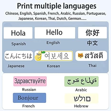 Notes Kindly download the app named LabelCloud, it can print Herew and Arabic well . Features: 1 . Direct thermal , no ink, toner, or ribbons .2 . Half weight and size of the traditional label maker!3 . Built-in rechargeable battery!4 . No more dizzy&difficult to press those mini keyboard!5 . DPI increasing by 25%,more cle