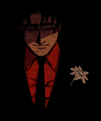 德喬苦笑了一會,把小雛菊收回皮夾,換出幾枚硬幣。暗處販賣機的藍色電光就像他兄長馬提奧的眼睛,能孤立他人、使他人恐懼。