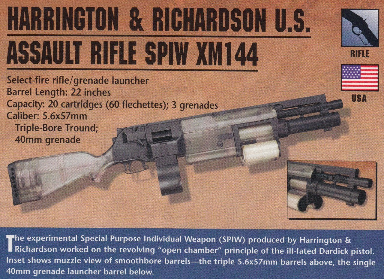 На конкурс Пентагона SPIW (Special Purpose Individual Weapon – Специальное целевое личное оружие), главной целью которого была разработка полуавтоматической винтовки под патрон с подкалиберной стреловидной пулей, эта фирма представила комплекс «автомат-патрон», выполненный по схеме Дардика. Причем конструктор лично сотрудничал с компанией на начальных этапах разработки винтовки H&R SPIW, для которой был создан Tround патрон с тремя оперенными подкалиберными стреловидными пулями и пластиковой гильзой.