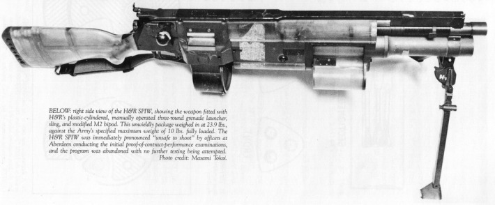 Американские военные не допустили винтовку до испытаний из соображений безопасности. Опасения военных вызвало то, что при стрельбе единственное, что защищало стрелка от прорыва пороховых газов из открытой каморы - это тонкостенная пластиковая гильза патрона.