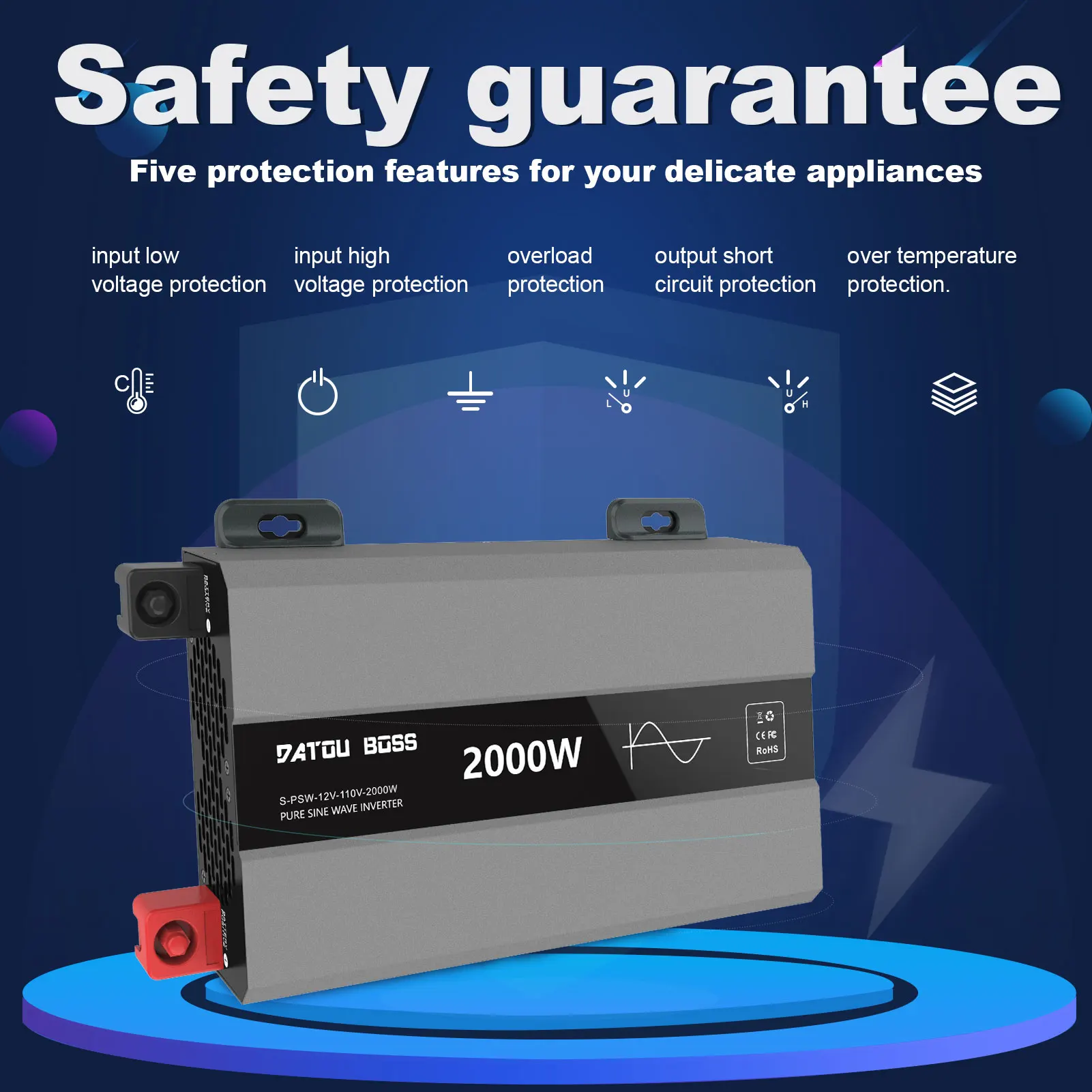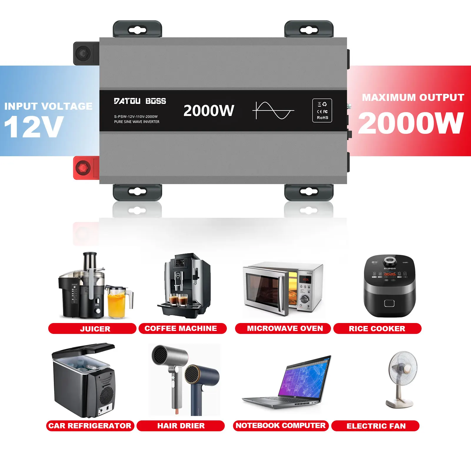 bQxSsCPYsHere you can buy DATOUBOSS Inverter Pure Sine Wave Inverter 4000W Continuous Power 2000W Solar Inverter DC 12V 24V to AC 230V Suitable for RV with free delivery to your post office.