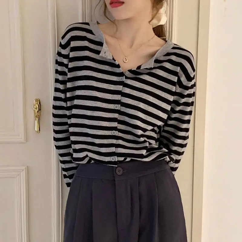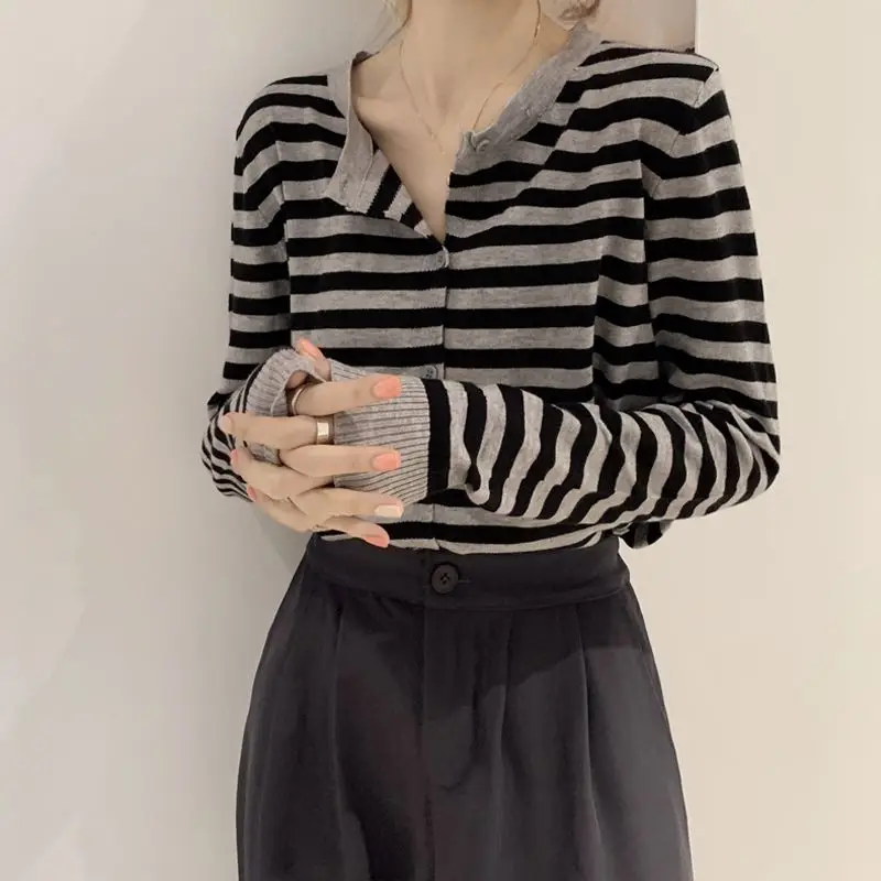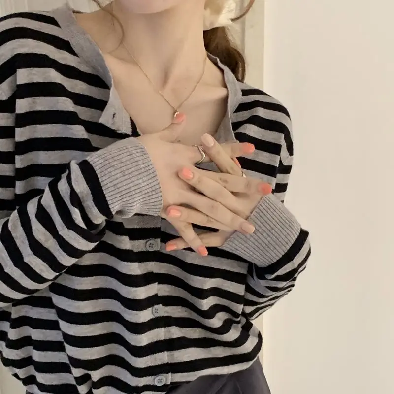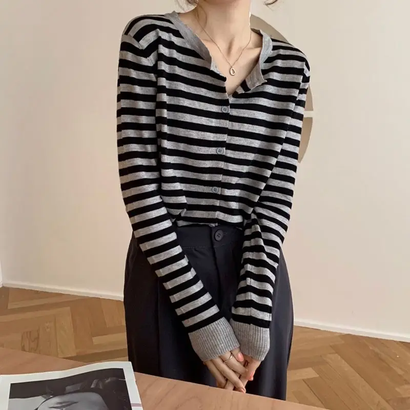 "DAYIFUN Cropped Striped Sweaters Women Fall Trendy Basic Long Sleeve Soft Knitwear Ladies Single Breasted Simple Woman Cardigans" * Buy Now With Free Shipping Just For $14