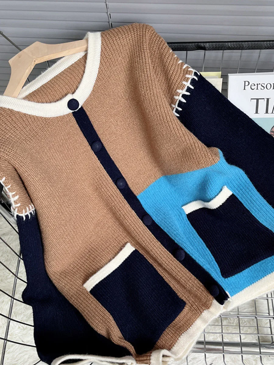 «DAYIFUN Korean Fashion Knitted Contrast Color Stitching Sweater Jacket Women Autumn And Winter Design Loose Knitted Cardigan» по лучшей цене на рынке! Всего за 22$ (2090рублей)