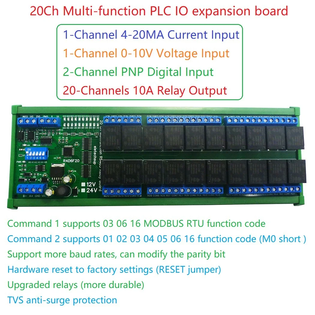LTsEWklDfHere you can buy DC 12V/24V 20Ch Multifunction RS485 Relay Board 20DO 2DI 2AI PLC IO Expanding Module Modbus RTU 4-20MA 0-10V Relay Module with free delivery to your post office.