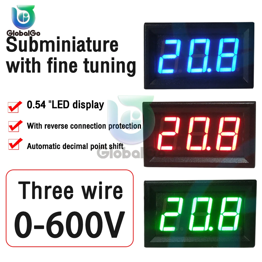 DC0-600V LED Digital Voltmeter Panel three-wire 3 Digit Display Voltage measuring Instrument With Fine Adjustment Potentiometer - Купить с бесплатной доставкой