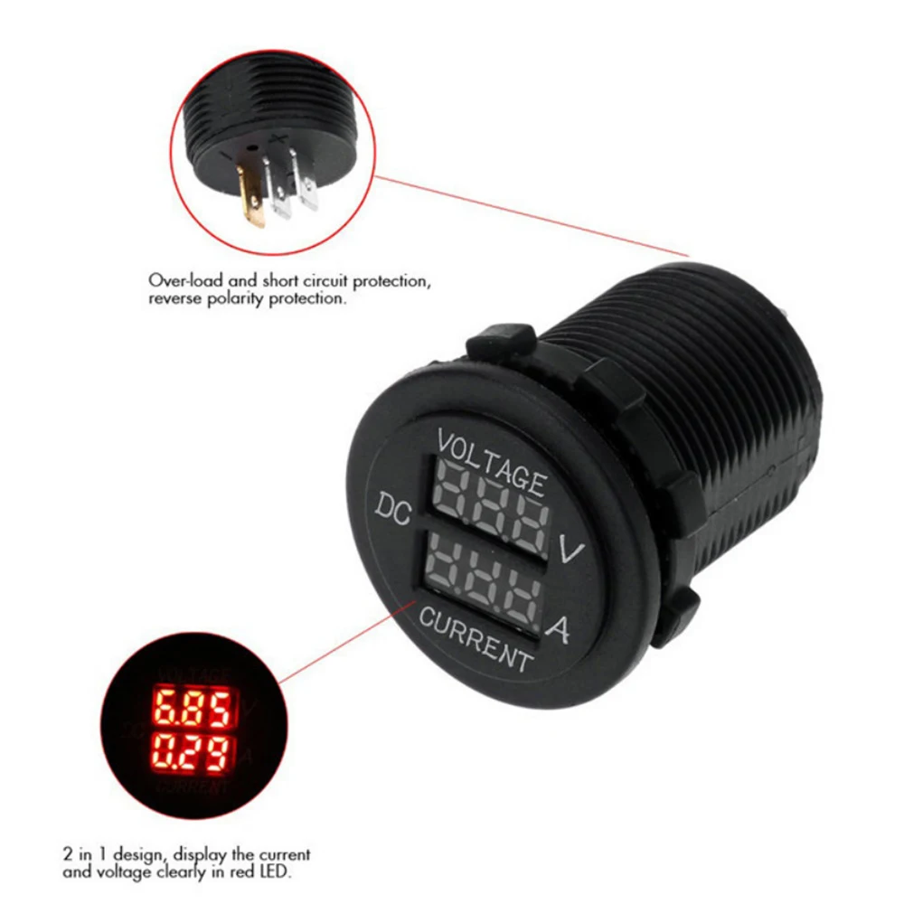 DC12-24V LED Display Circular Automotive Voltmeter Ammeter Digital Car Voltage Current Meter Volt Detector Tester Monitor Panel - Купить с бесплатной доставкой