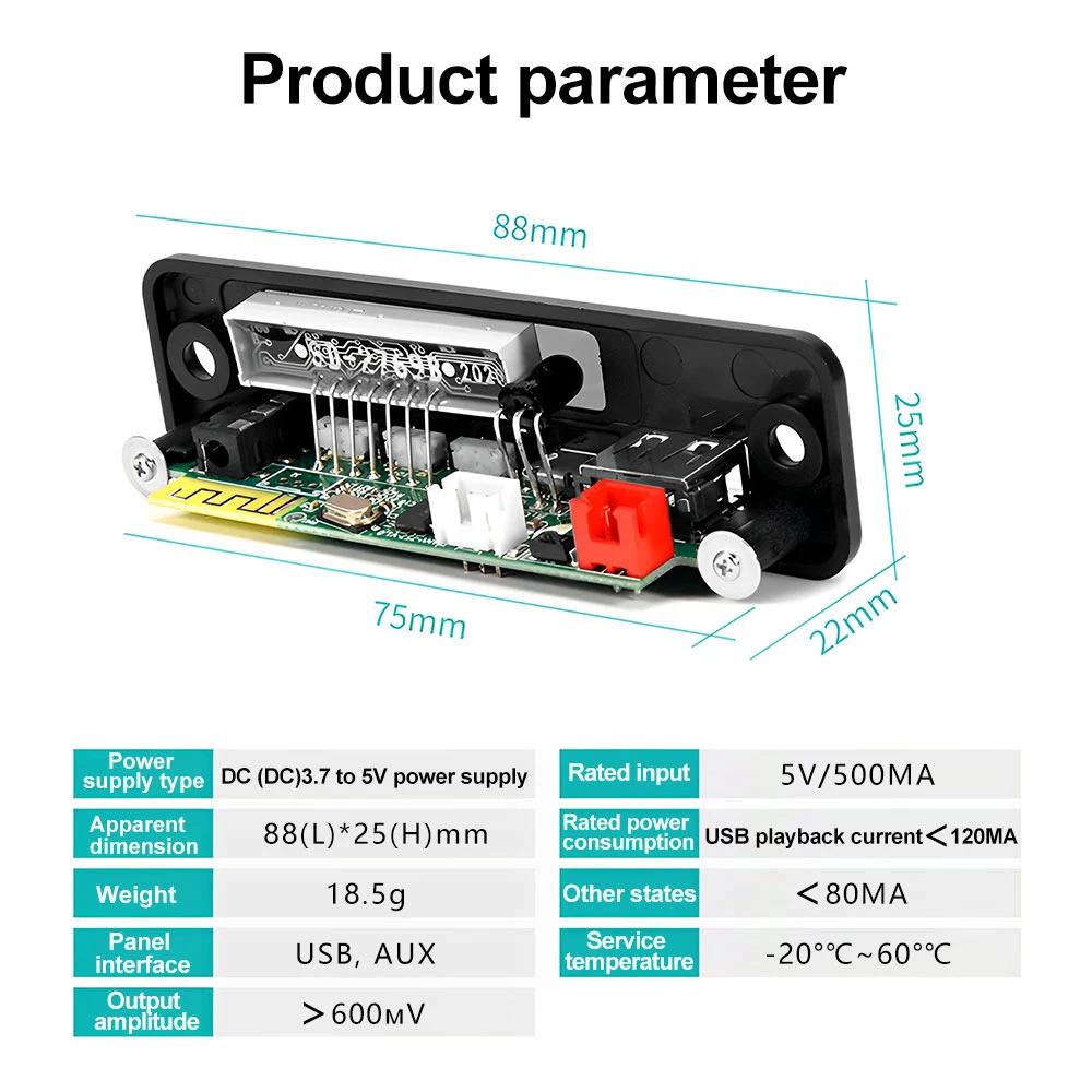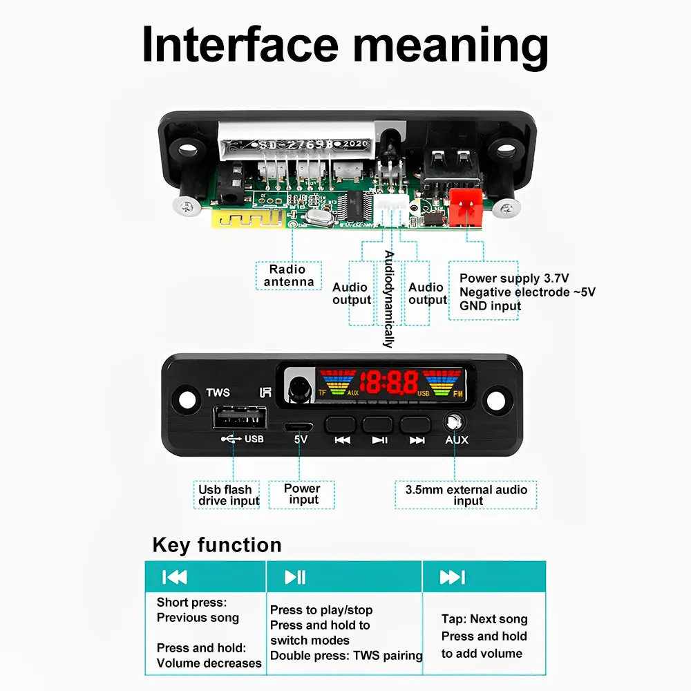 DC3.7~5V Audio Decode Board Car Music MP3 Decoder Board Bluetooth 5.0 Support AUX FM USB Hands-Free Calling Audio Player Module - Купить с бесплатной доставкой