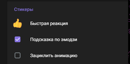 Гортаємо там трохи вниз і вимикаємо цикл анімації стікерів (прибираємо галочку з пункту "Зациклить анимацию":