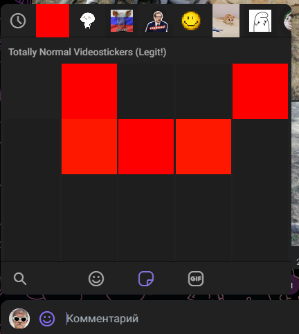 Далі переходимо на вкладку зі стікерами і дуже швидко відправляємо наш червоний квардат: