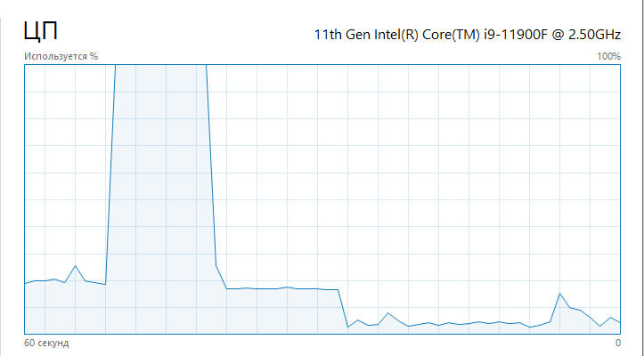 Навіть процесор i9-11900f не вивозить таке(дивіться саме на стрибок графіку):