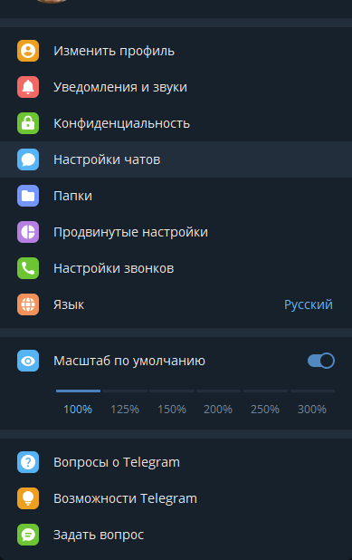 3) Настройки чатов: