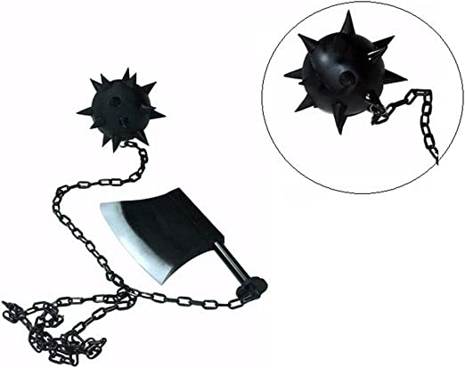 A spiked flail and battle axe connected bye a long chain, with the sun steel having a grey-brown color. This weapon was given to Kazuhiro by a the same blacksmith who forged his teacher ones. Thanks to his high strength, Kazuhiro is able to use this strange weapon very easily, almost as if it weighed nothing for him.