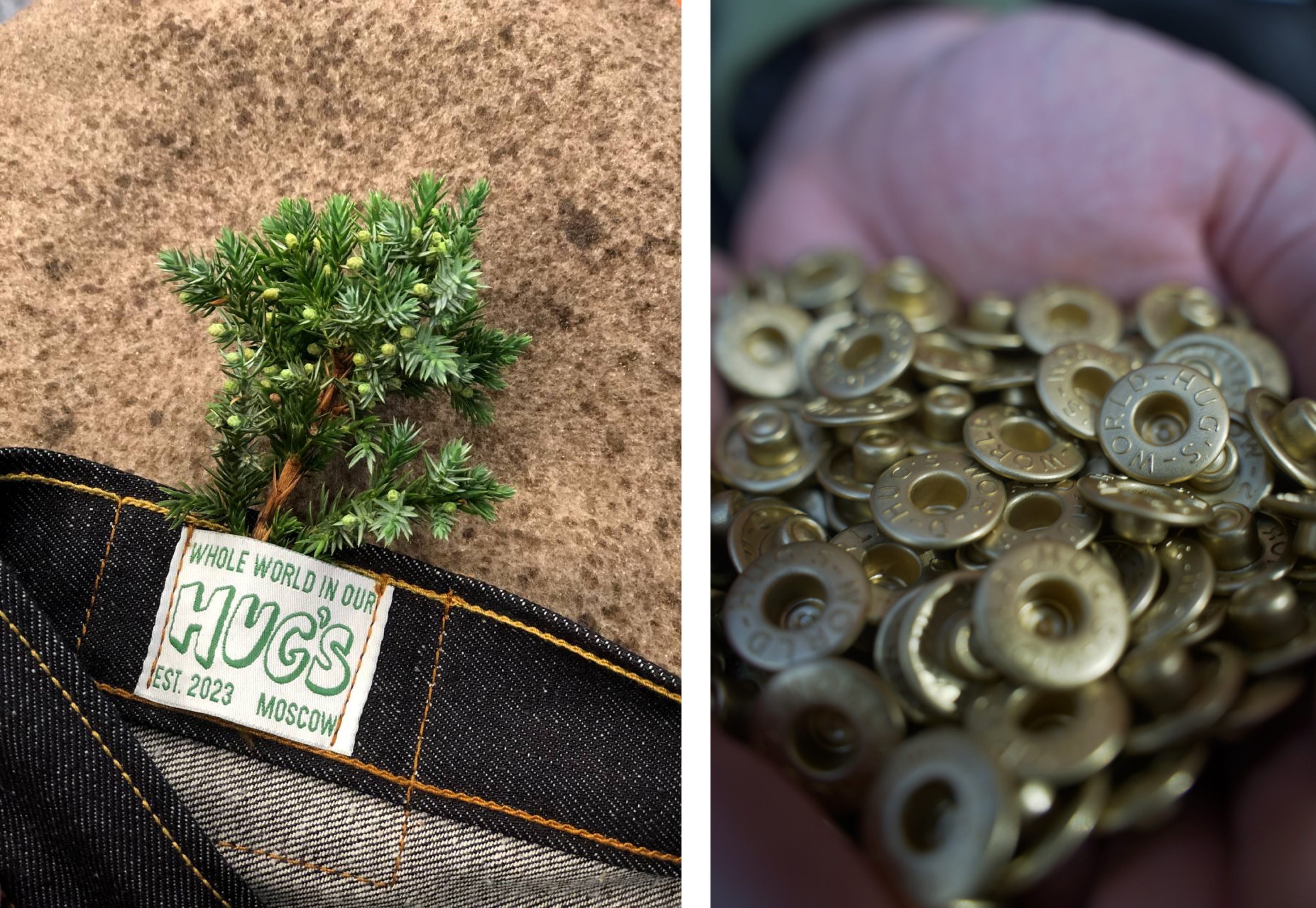 Лаконичное и вместе с тем громкое имя HUG’S несет в себе не только аббревиатуру городов и областей - Хотьково, Удомля, Гагарин, Смоленская область, откуда родом участники команды, но и миссию объятия всего мира своими джинсами, как говорится в их девизе "Whole World in Our Hug’s". За каждой буквой HUG’S стоит целая философия, описывающая не только подход к производству, но и саму суть бренда.