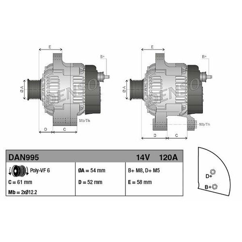DENSO DAN995 Alternateur Alfa Romeo Fiat Lancia DAN995 Générateur DAN995 DENSOprix pour 1 pièce.