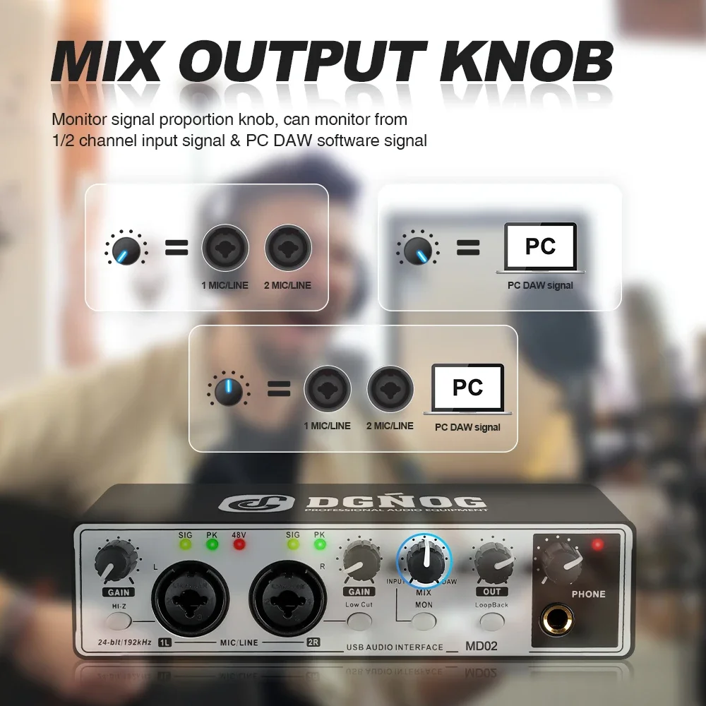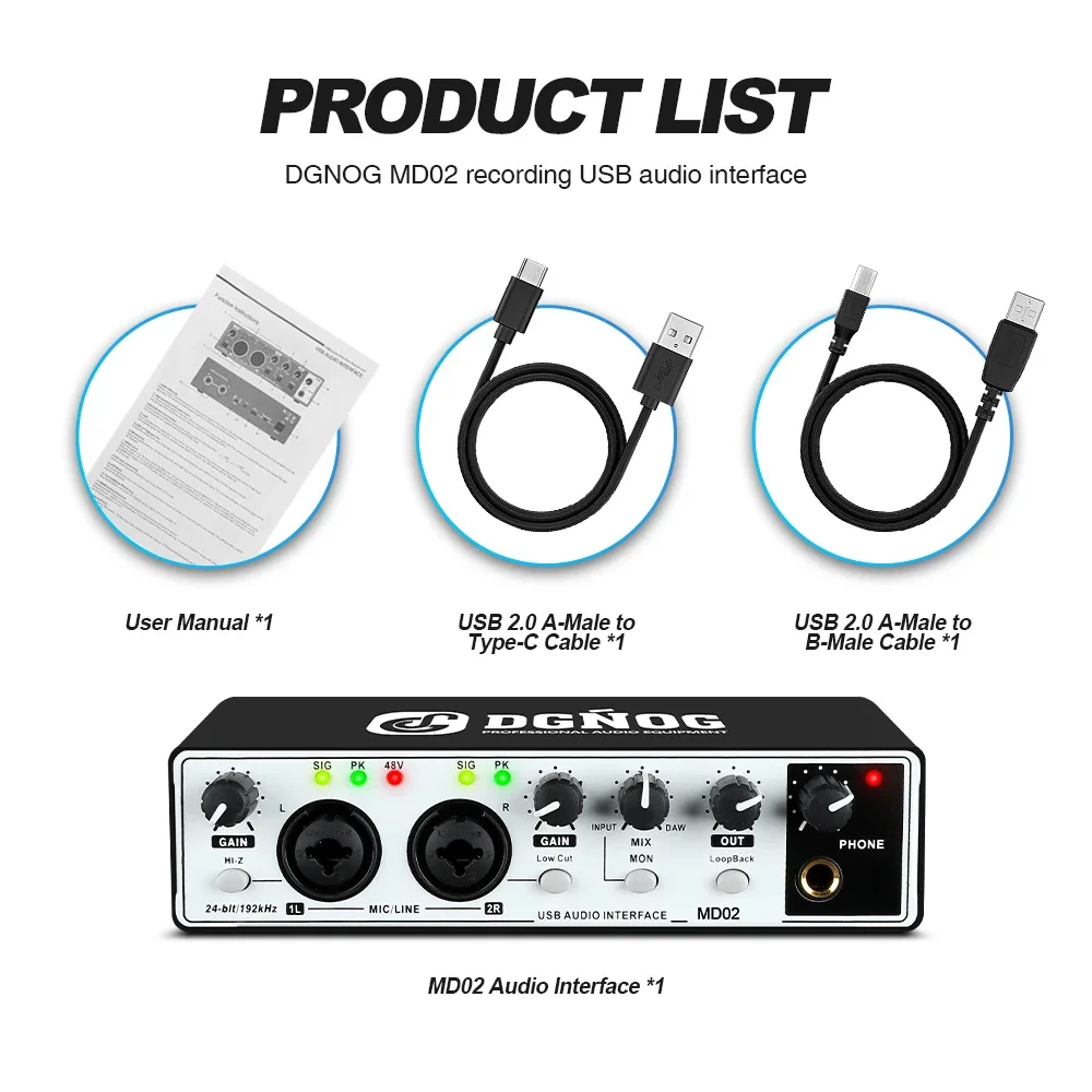 jrBDsqLPHere you can buy DGNOG MD02 USB Audio Interface Professional Computer Sound Card for Recording Studio Singing Podcast Electric Guitar with free delivery to your post office.