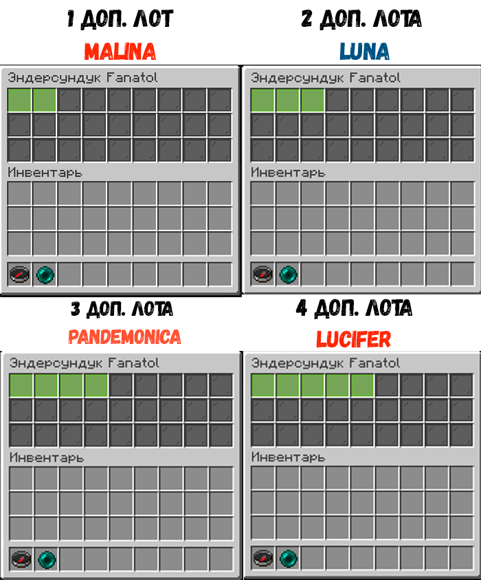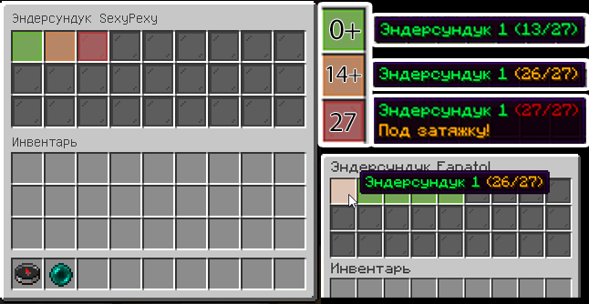 Если при заходе в эндерсундук на большинстве других серверов вы увидите самую обычную сетку из 27 слотов для хранения ресурсов, то у нас вы увидите следующие:
