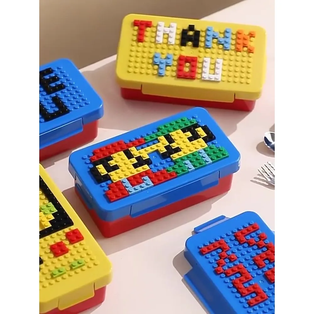DIY Children's Block Lunch Box Sealed Creative Lunch Box Colorful Block Patchwork Student Lunch Box Portable Bento Lunch Box - Купить с бесплатной доставкой