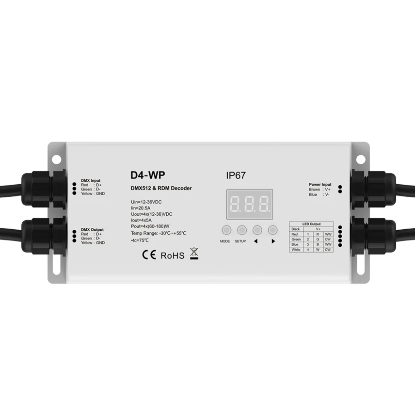 RaMEONCGzHere you can buy DMX512 RGBW Controller 4 Channel Waterproof IP67 DC 12V 24V 20A Digital Numeric Display DMX 512 RDM Decoder D4-WP for LED Strip with free delivery to your post office.