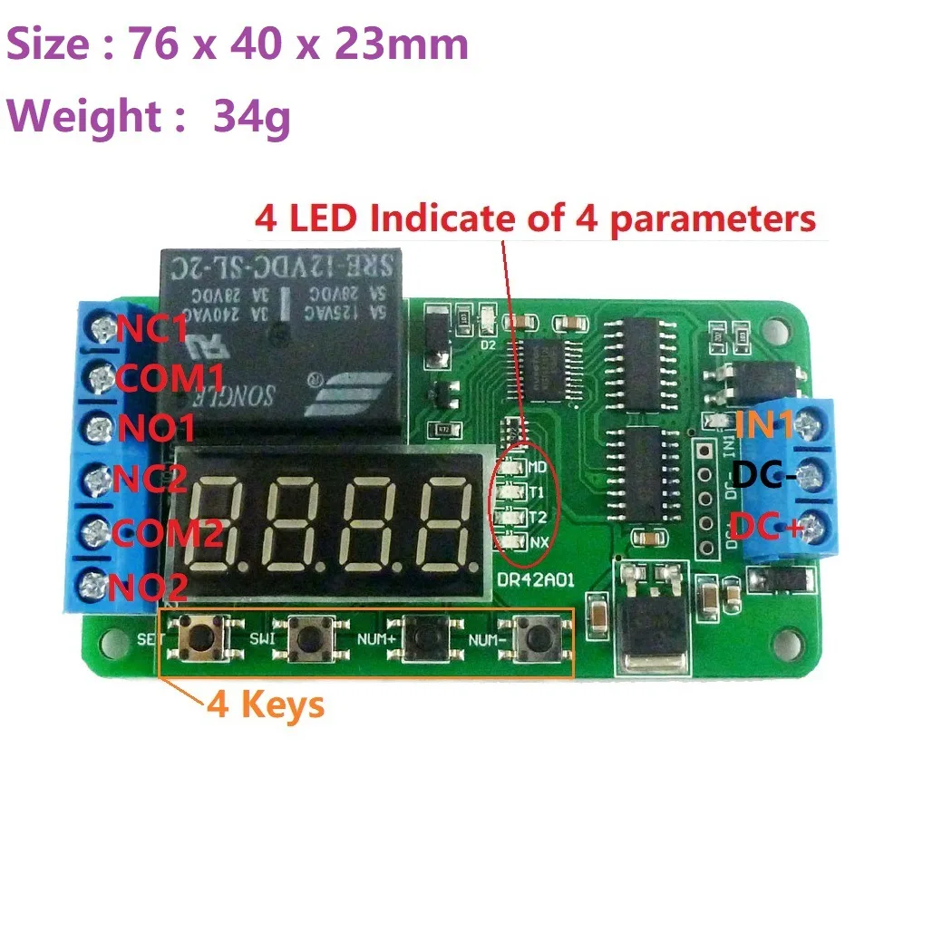 DR42A01 Dual Channel 12V Timing Relay Multifunctional DPDT0.1-9999 Digital Display Delay Timer Relay Time Control Switch Relay - Купить с бесплатной доставкой