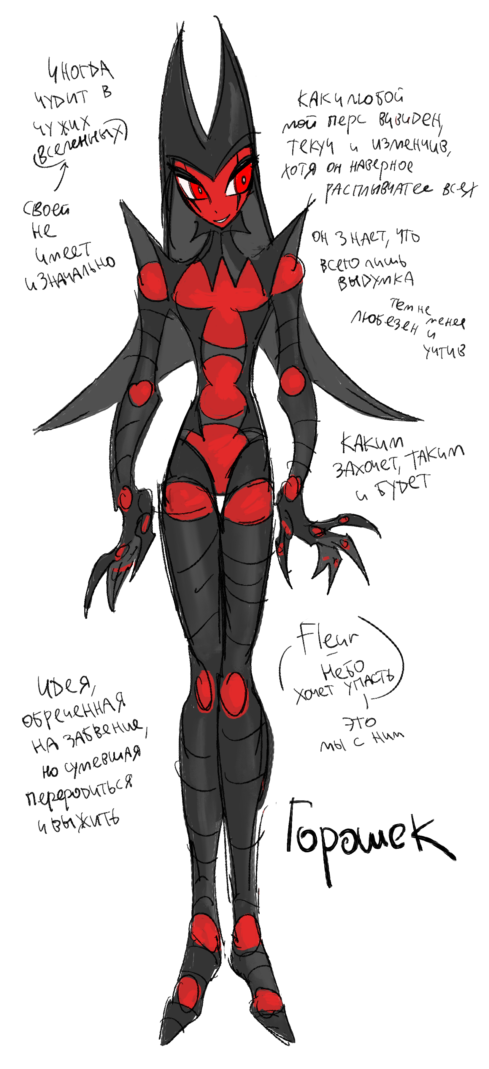 - важный нюанс - нельзя изменять глаза персонажа, даже если вы рисуете его в иной форме или в иной палитре - держите их красными с вертикальными полосочкамии