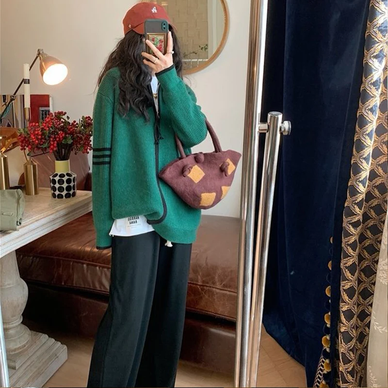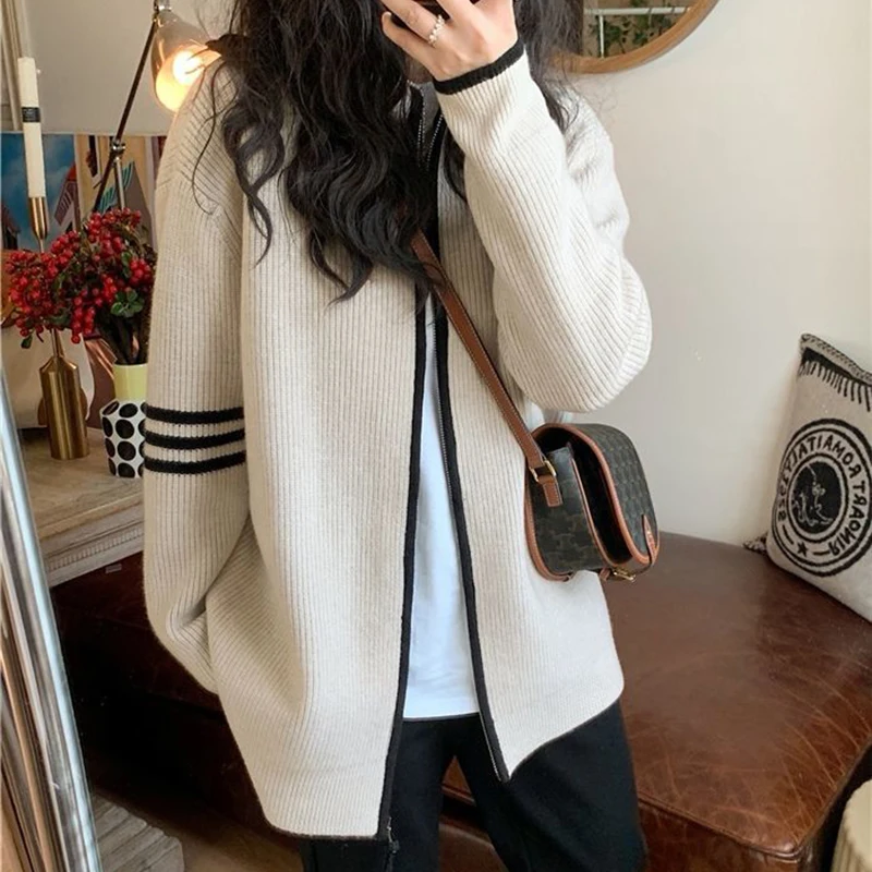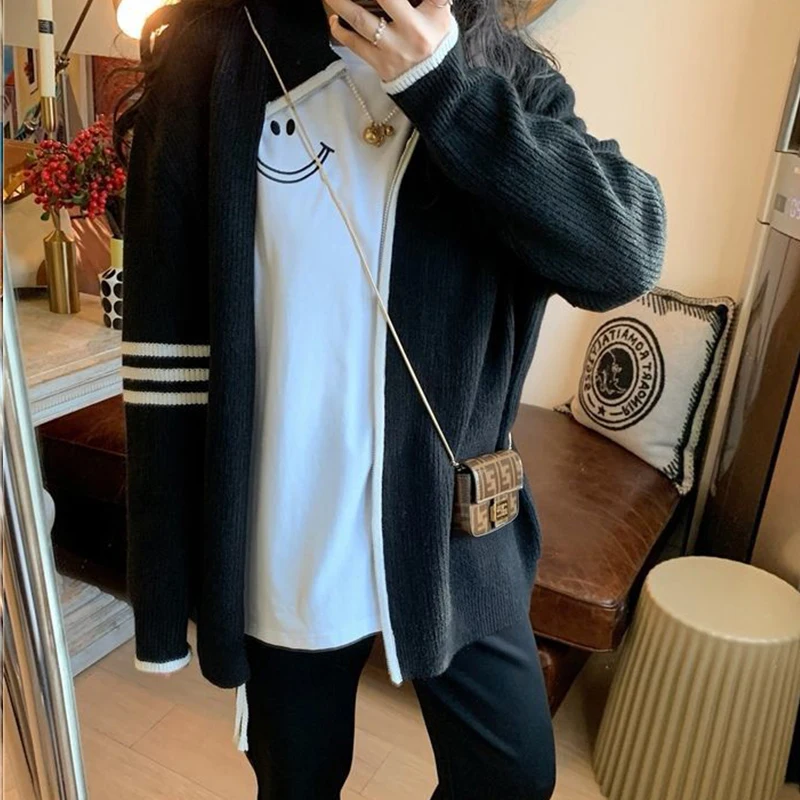 ZnGkgCiwXiДолго искали DUOFAN Stand-up Collar Zipper Women Cardigan Sweater New Korean Style BF Loose Oversized Thickened Contrast Color Knitted Coat, но не могли найти? Предоставляем вашему вниманию DUOFAN Stand-up Collar Zipper Women Cardigan Sweater New Korean Style BF Loose Oversized Thickened Contrast Color Knitted Coat по лучшей цене на рынке!