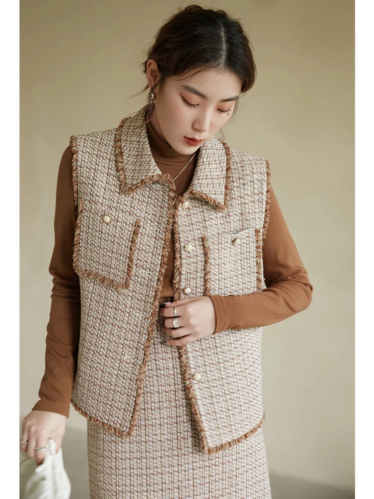 "DUSHU Women Temperament Small Fragrance Jackets Autumn Winter New Straight Slim Retro Vests Patch Pocket Design Commuter Vests" * Buy Now Just For 45$