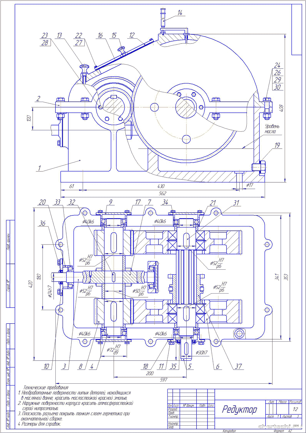 Пользоваться калькулятором при расчетах запрещалось, только логарифмической линейкой. Редуктор нужно было еще и начертить, примерно вот так: