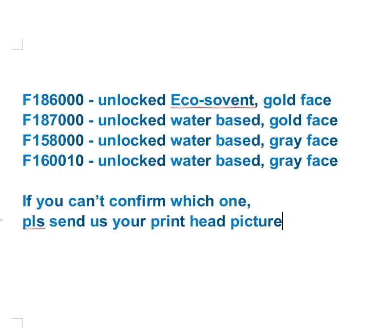 dEfLoHSHyZHere you can buy DX5 Eco-Solvent Unlocked print head F186000 F187000 F160010 F158000 Used for Epson R1800 R1900 R2000 R2400 R2880 Pro4400 Pro4450 with free delivery to your post office.