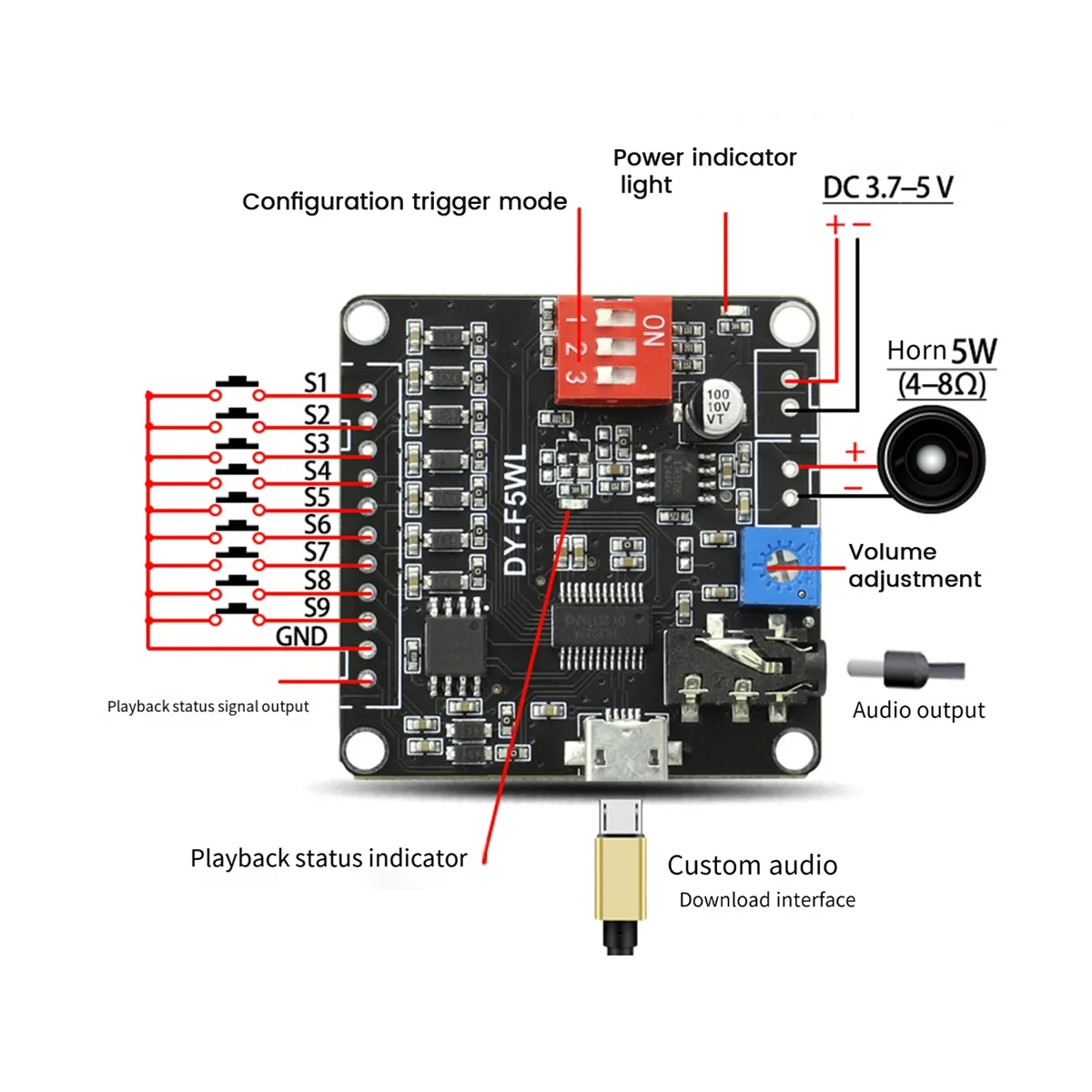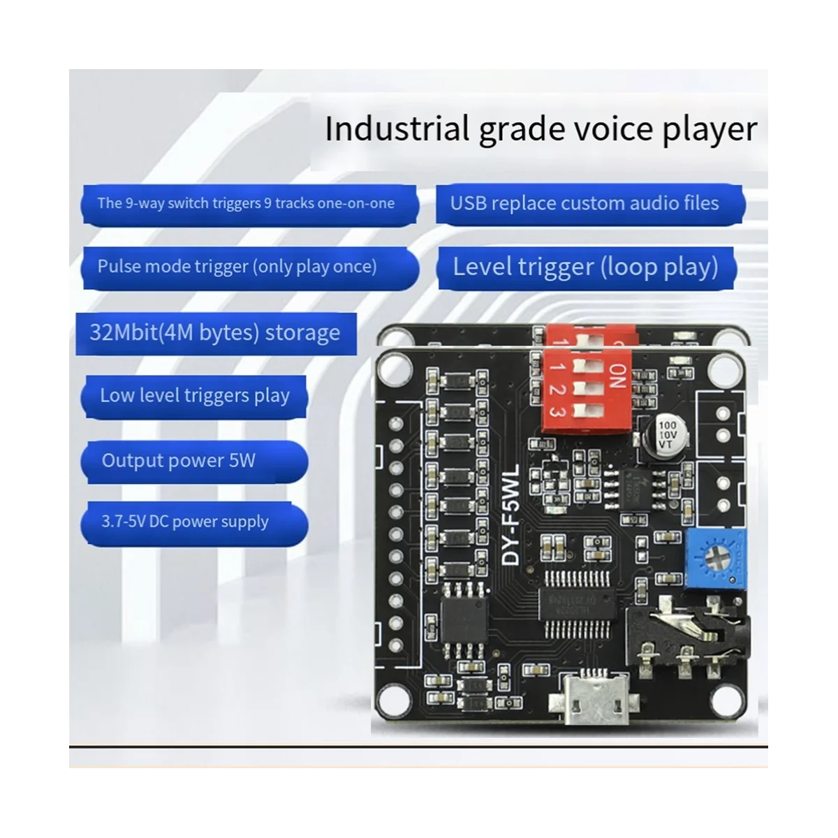 luQiQPDHrHere you can buy DY-F5WL 5W Voice Playback Module Supporting -SD Card MP3 Music Player for with free delivery to your post office.
