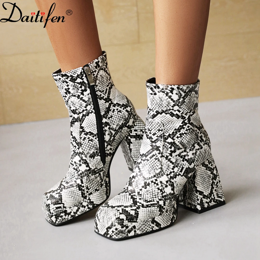 «Daitife Small Square Head Personality Snakeskin Pattern Short Boots Autumn New Net Red Thick Mid-Heeled Thin Boots Women» по лучшей цене на рынке! Всего за 70$ (6650рублей)