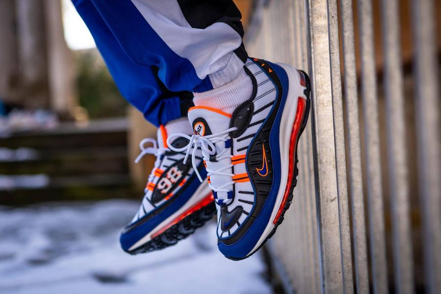 Культовые Nike Air Max 98 в расцветке, посвященной баскетбольной команде «Нью-Йорк Никс». Верхняя часть кроссовок выполнена из прочного жаккардового материала с прорезиненными швами и оригинальной системой шнуровки на петлях, дополненной амортизирующей подошвой с технологией Air Max, в которой воздушные баллоны распределены по всей поверхности подошвы.
