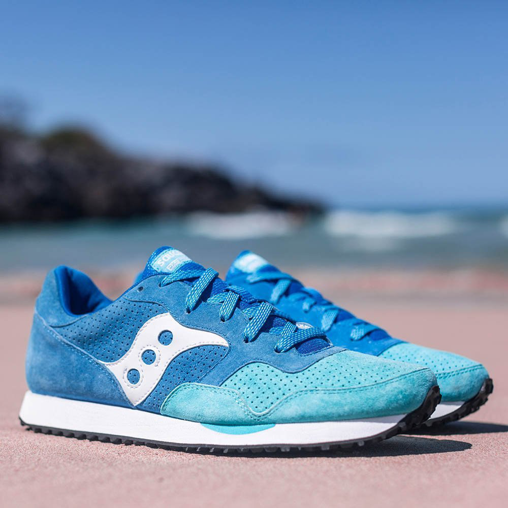 Переиздание классической беговой модели Saucony, которая была создана совместно с легкоатлетом Родом Диксоном. Кроссовки в сине-голубой расцветке, выполнены из сочетания высококачественной натуральной замши и нейлона. Промежуточная подошва из пеноматериала ЭВА отвечает за амортизацию и поглощение ударов при беге.