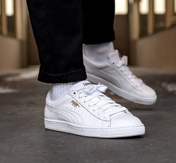 ΠΠ»Π°ΡΡΠΈΡΠ΅ΡΠΊΠ°Ρ Π±Π°ΡΠΊΠ΅ΡΠ±ΠΎΠ»ΡΠ½Π°Ρ ΠΌΠΎΠ΄Π΅Π»Ρ Puma, Π²ΡΠΏΡΡΠ΅Π½Π½Π°Ρ Π½Π΅ΠΌΠ΅ΡΠΊΠΈΠΌ ΡΠΏΠΎΡΡΠΈΠ²Π½ΡΠΌ Π±ΡΠ΅Π½Π΄ΠΎΠΌ Π² ΡΠ΅ΡΠ΅Π΄ΠΈΠ½Π΅ Π²ΠΎΡΡΠΌΠΈΠ΄Π΅ΡΡΡΡΡ Π½Π° ΠΎΡΠ½ΠΎΠ²Π΅ ΠΏΠΎΠΏΡΠ»ΡΡΠ½ΠΎΠ³ΠΎ ΡΠΎΠ³Π΄Π° ΡΠΈΠ»ΡΡΡΠ° Clyde. ΠΠΈΠ·ΠΊΠΈΠ΅ Puma Basket ΡΠΊΠΎΠ½ΡΡΡΡΠΈΡΠΎΠ²Π°Π½Ρ ΠΈΠ· ΠΏΡΠΎΡΠ½ΠΎΠΉ Π½Π°ΡΡΡΠ°Π»ΡΠ½ΠΎΠΉ ΠΊΠΎΠΆΠΈ Π±Π΅Π»ΠΎΠ³ΠΎ ΡΠ²Π΅ΡΠ° Ρ ΡΠ΅ΠΊΡΡΡΡΠ½ΡΠΌΠΈ ΡΠΈΡΠΌΠ΅Π½Π½ΡΠΌΠΈ ΠΏΠΎΠ»ΠΎΡΠΊΠ°ΠΌΠΈ ΠΈ Π·ΠΎΠ»ΠΎΡΠΈΡΡΡΠΌ Π±ΡΠ΅Π½Π΄ΠΈΠ½Π³ΠΎΠΌ ΡΠ±ΠΎΠΊΡ. ΠΠΎΠ½ΠΎΡ ΡΠΎΠΌΠ½ΡΠΉ ΠΎΠ±ΡΠ°Π· Π΄ΠΎΠΏΠΎΠ»Π½Π΅Π½ ΡΠ΅ΠΊΡΡΡΡΠ½ΠΎΠΉ ΠΏΡΠΎΡΠΈΡΠΎΠΉ ΠΏΠΎΠ΄ΠΎΡΠ²ΠΎΠΉ ΠΈΠ· ΠΌΡΠ³ΠΊΠΎΠΉ Π½Π°ΡΡΡΠ°Π»ΡΠ½ΠΎΠΉ ΡΠ΅Π·ΠΈΠ½Ρ.