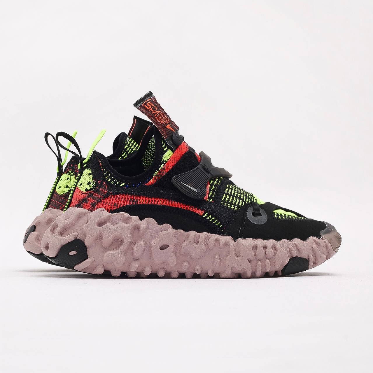 Кроссовки из экспериментальной дизайнерской линейки Nike ISPA, которая разрабатывает новые авангардные силуэты с нуля или перерабатывает архивные модели. Гибридный силуэт Nike Overreact сконструирован из дышащего вязаного материала Flyknit с плоской лентой и фиксатором на липучке вместо шнуровки. Легкий текстильный верх установлен на толстую подошву с объемным и текстурным рисунком снаружи и амортизационной технологией React внутри.