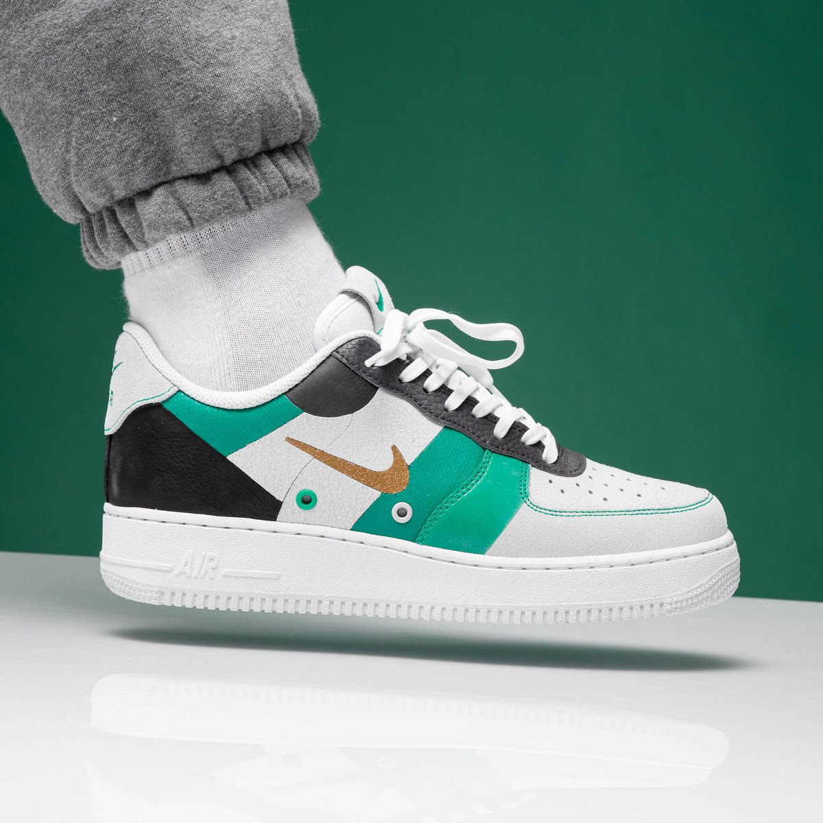 Переиздание кроссовок Nike Air Force-1, названных в честь честь президентского самолета США. Низкий баскетбольный силуэт 1982 года выполнен прочных текстильных материалов в яркой расцветке в стиле колор-блок. Кроссовки установлены на массивную подошву с рельефной резиновой подметкой белого цвета и технологией Nike Air.
