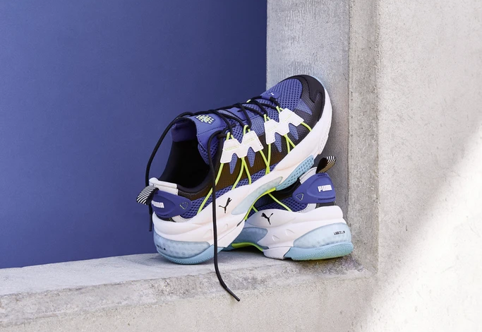 Одна из последних моделей Puma — LQD Cell Omega Manga Cult. Гибридные кроссовки оснащены функциональной и эффективной системой амортизации Cell с воздушными "сотами" внутри промежуточной подошвы, выполненной из легкого материала IMEVA. Сине-белый многослойный верх выполнен прочного текстиля и системой шнуровки на петлях.