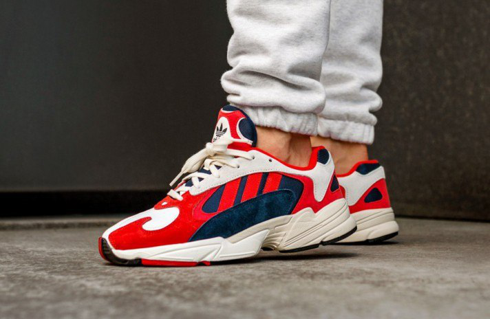 Яркая расцветка популярных adidas Originals Yung-1 с красно-сине-белым верхом. Кроссовки представляют современный взгляд на ретро-хит конца 90-х Falcon Dorf. Массивный силуэт с фирменными тремя полосками сбоку выполнен с технологией Torsion и установлен на толстую бежевую подошву из пенного материала ЭВА.