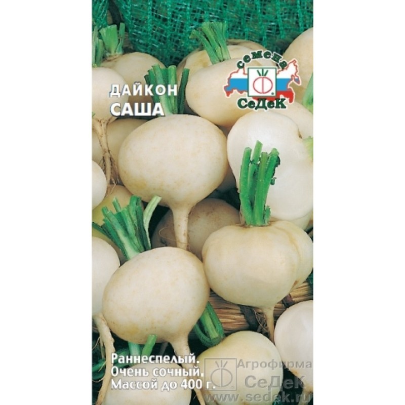 Подробный обзор сорта Дайкон 'Саша' с фото и видео . Дайкон 'Саша' — сорт, полученный Всероссийским НИИ селекции и семеноводства овощных культур . Разрешен к использованию по всей территории Российской Федерации с 1994 года .